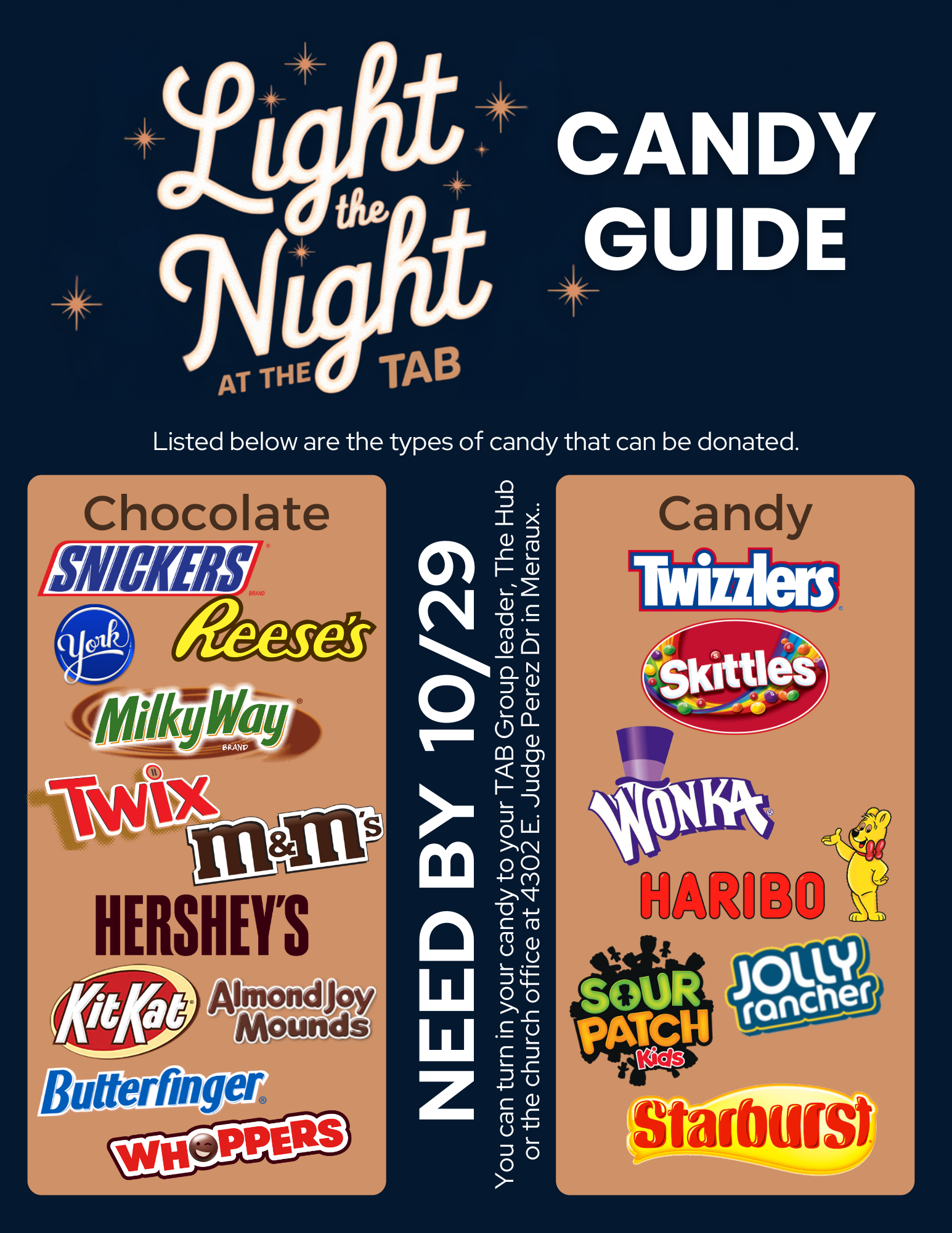 🍭 Candy donations needed by Wednesday, October 29th. View our candy guide!